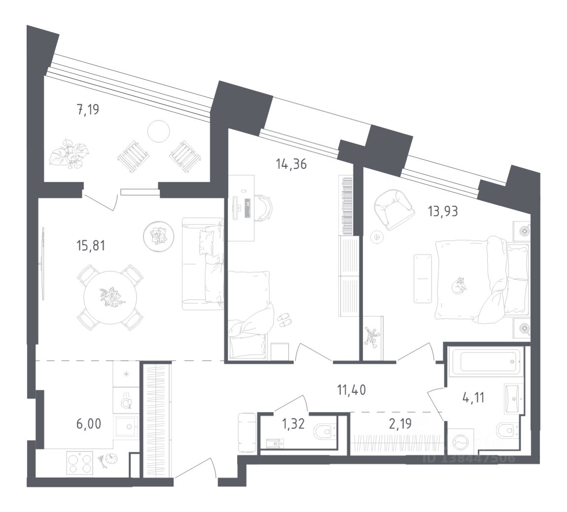 Строим кварталы для жизни с заботой о будущем. Предлагаются 2-комнатные апартаменты бизнес-класса площадью 76,9 кв.м в корпусе 20 на 9-м этаже, в жилом комплексе "Sky Sputnik".