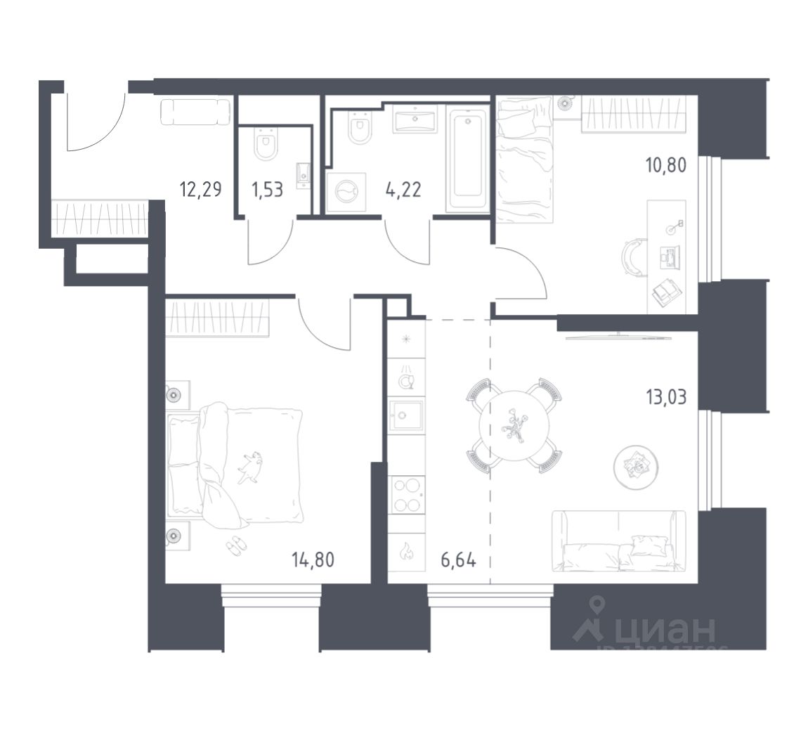 Строим кварталы для жизни с заботой о будущем. Предлагаются 2-комнатные апартаменты бизнес-класса площадью 63,31 кв.м в корпусе 19 на 3-м этаже, в жилом комплексе "Скай Спутник".