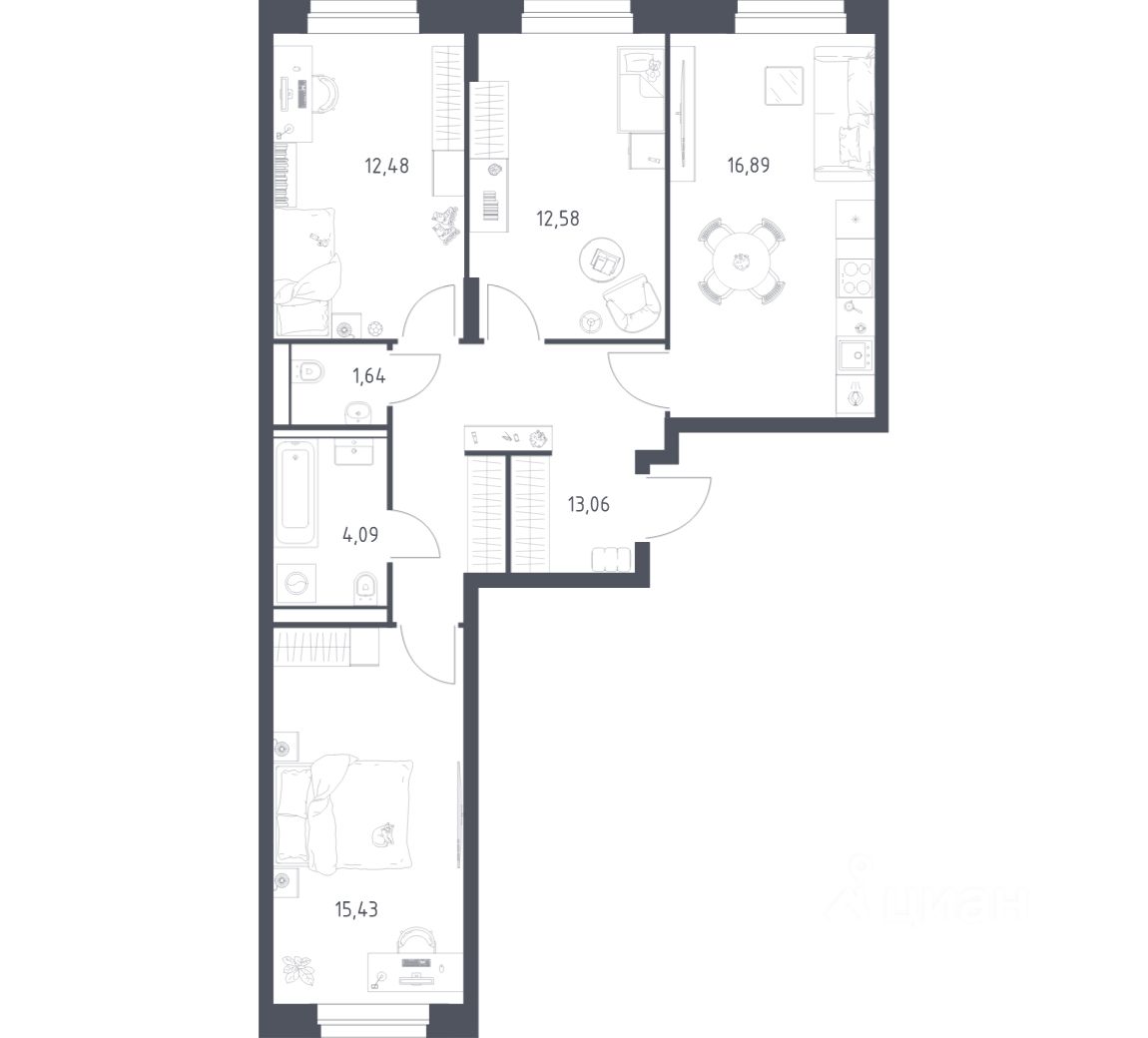 В варианте без отделки мы установили окна и входную дверь, завели в квартиру коммуникации. Получайте ключи и начните создавать интерьер мечты в новой квартире.