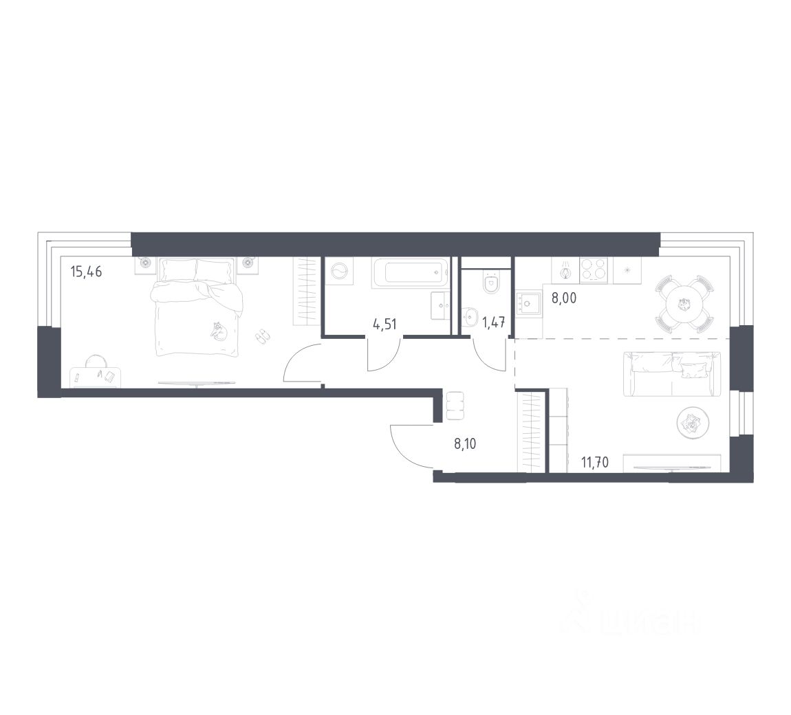 Строим кварталы для жизни с заботой о будущем. Предлагается 1-комнатная квартира комфорт-класса площадью 49,24 кв.м в корпусе 2 на 8-м этаже, в жилом комплексе "Квартал Строгино".
