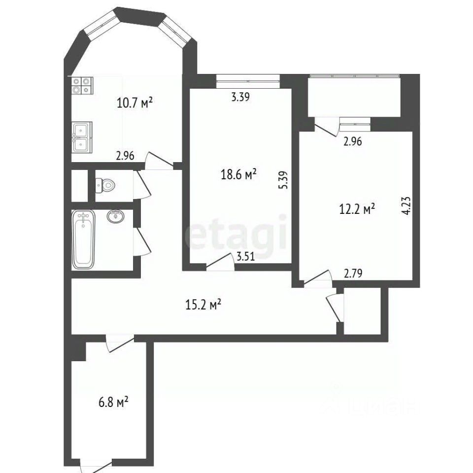 Продается просторная 2 к. квартира 68,2 м2 (без учета лоджии). Расположена на 4 этаже кирпичного дома. Просторный холл, комнаты изолированные 18.7 и 12,2 м2, потолки 2,7 м, кухня с эркером 10,7 м2, санузел раздельный, лоджия 1,6 м2, кладовое помещение.