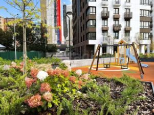 Рядом — продуктовые магазины, салоны красоты, детские площадки, школы и детские сады.