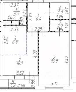 Квартира находится на 4-м этаже 6-этажного дома. Площадь квартиры составляет 51.40 кв.м., с учетом лоджии, комнаты правильной прямоугольной формы, площадью 16,9 кв.м и 10,1 кв.м, санузел раздельный, из комнаты выходы на большую комфортную лоджию, холл-7,1 кв.м, при входе есть помещение под гардеробную комнату.