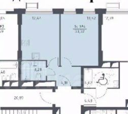 Выполнена классическая отделка в светлых тонах, которая сочетается с любым интерьером. Установлен кухонный гарнитур без бытовой техники. Планировка: кухня-гостиная 12,44м2 и комната 13,42 м2, с/у 3,28м2.