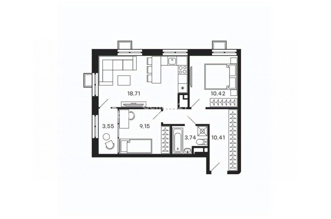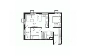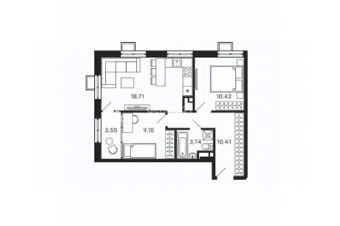 Структура комнат: 9.15 + 14.7 + 10.31 м²