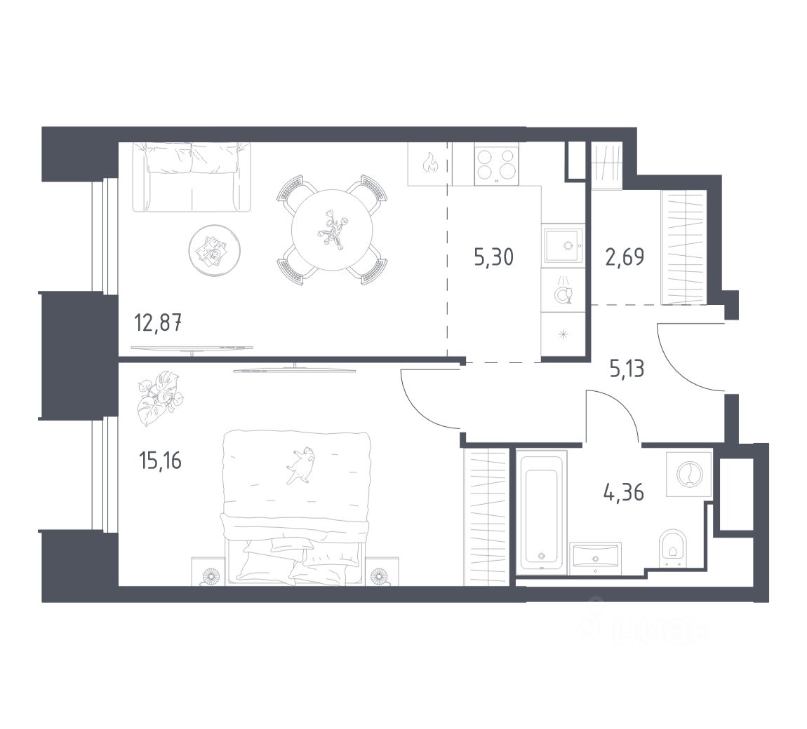 Строим кварталы для жизни с заботой о будущем. Предлагаются 1-комнатные апартаменты бизнес-класса площадью 45,51 кв.м в корпусе 19 на 28-м этаже, в жилом комплексе "Sky Sputnik".
