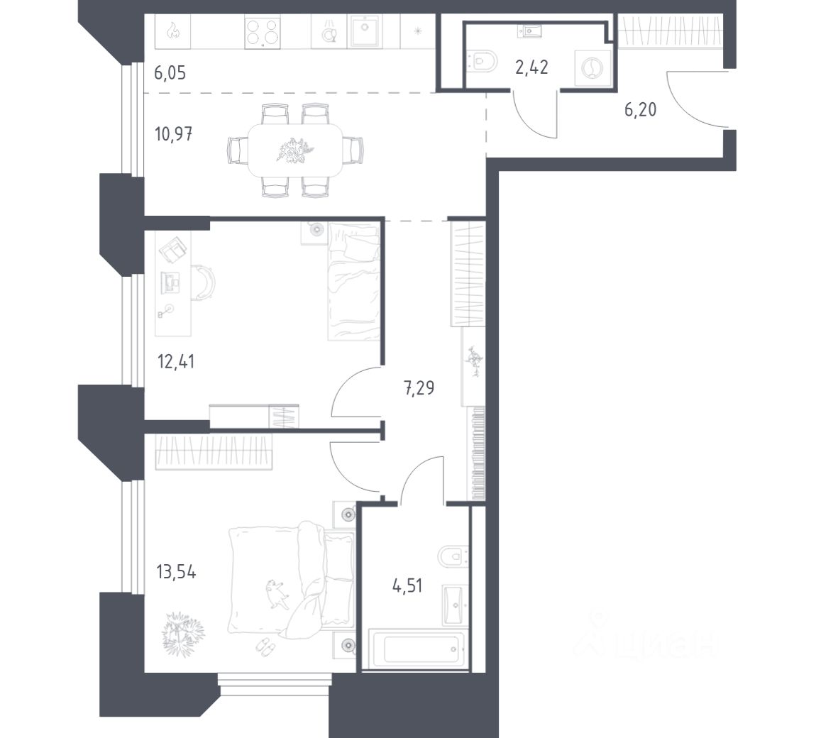 Строим кварталы для жизни с заботой о будущем. Предлагаются 2-комнатные апартаменты бизнес-класса площадью 63,39 кв.м в корпусе 21 на 23-м этаже, в жилом комплексе "Sky Sputnik".