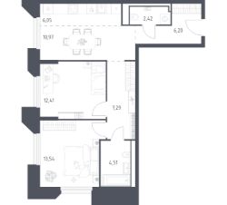 Строим кварталы для жизни с заботой о будущем. Предлагаются 2-комнатные апартаменты бизнес-класса площадью 63,39 кв.м в корпусе 21 на 27-м этаже, в жилом комплексе "Sky Sputnik".