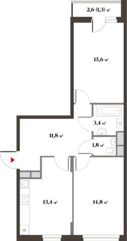Общая площадь61,3 м²