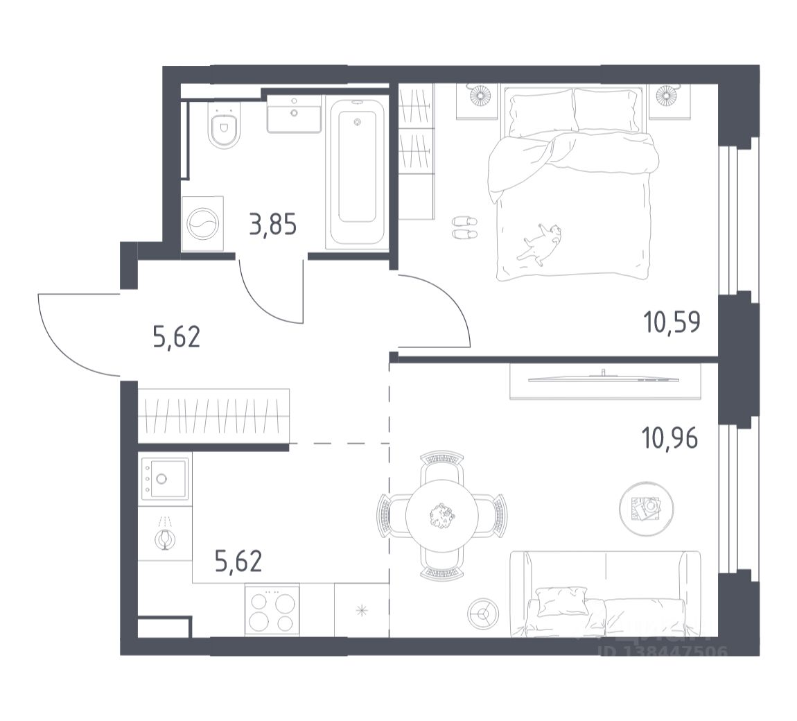 В варианте с готовой отделкой мы поклеили обои под покраску, постелили полы в комнатах и санузлах, выполнили отделку стен. Установили сантехнику и межкомнатные двери, провели электрику. Это лучшее соотношение цены, качества и затраченного времени. Осталось только выбрать место для обеденного стола и удобного дивана.