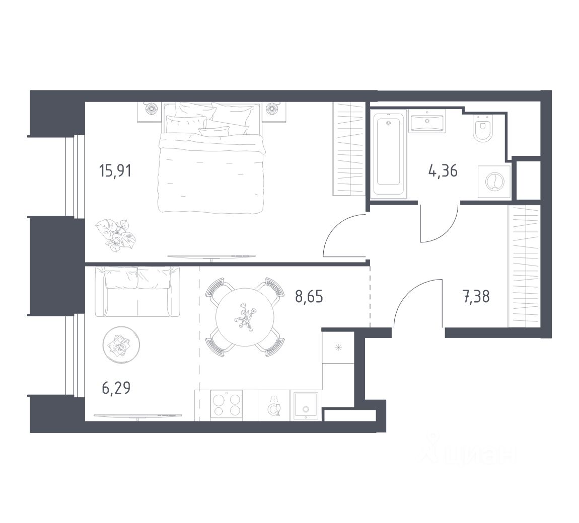 Все апартаменты сдаются с отделкой и мебелью.
