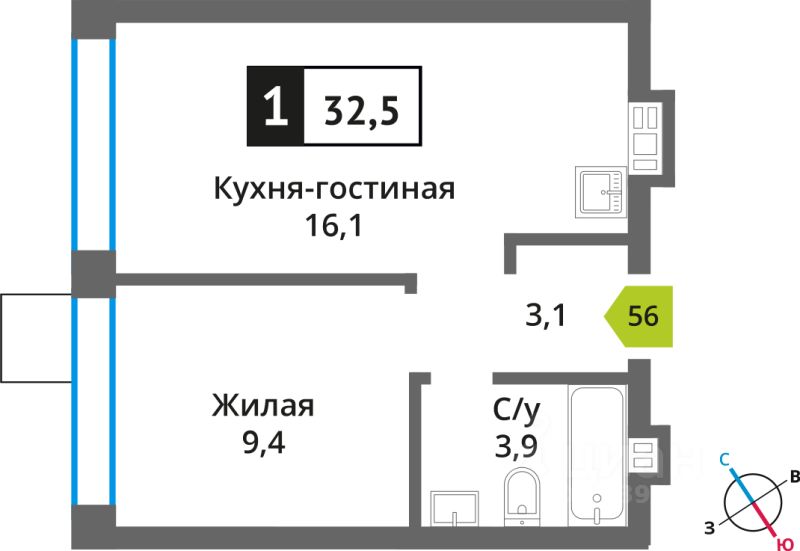 Продаётся 1-комнатная квартира в сданном доме (Соловьиная улица, 6 (поз.13)), срок сдачи: IV-кв. 2025, общей площадью 32.5 кв.м., на 9 этаже. Новый жилой комплекс "Отрада. Никольский квартал" от застройщика "СЗ Отрада Вилладж" расположен по адресу: Россия, Московская область, Красногорск, коттеджный посёлок Никольский Парк, улица Александра Блока