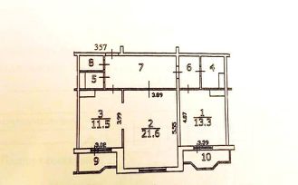 Двухкомнатная квартира, 16-й эт., общая площадь 73,4 кв. м; комнаты - 21,6 и 13,3 кв. м; кухня 11,5 кв.м; 2 с/у: один совмещенный с ванной, второй туалет; две застекленные лоджии. Потолки 2,73 м. Окна на бульвар.