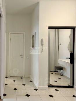 Просторная прихожая с нишей под гардероб до потолка. На входной двери зеркало во весь рост - удобно делать селфи. Роутер спрятан в шкафу.