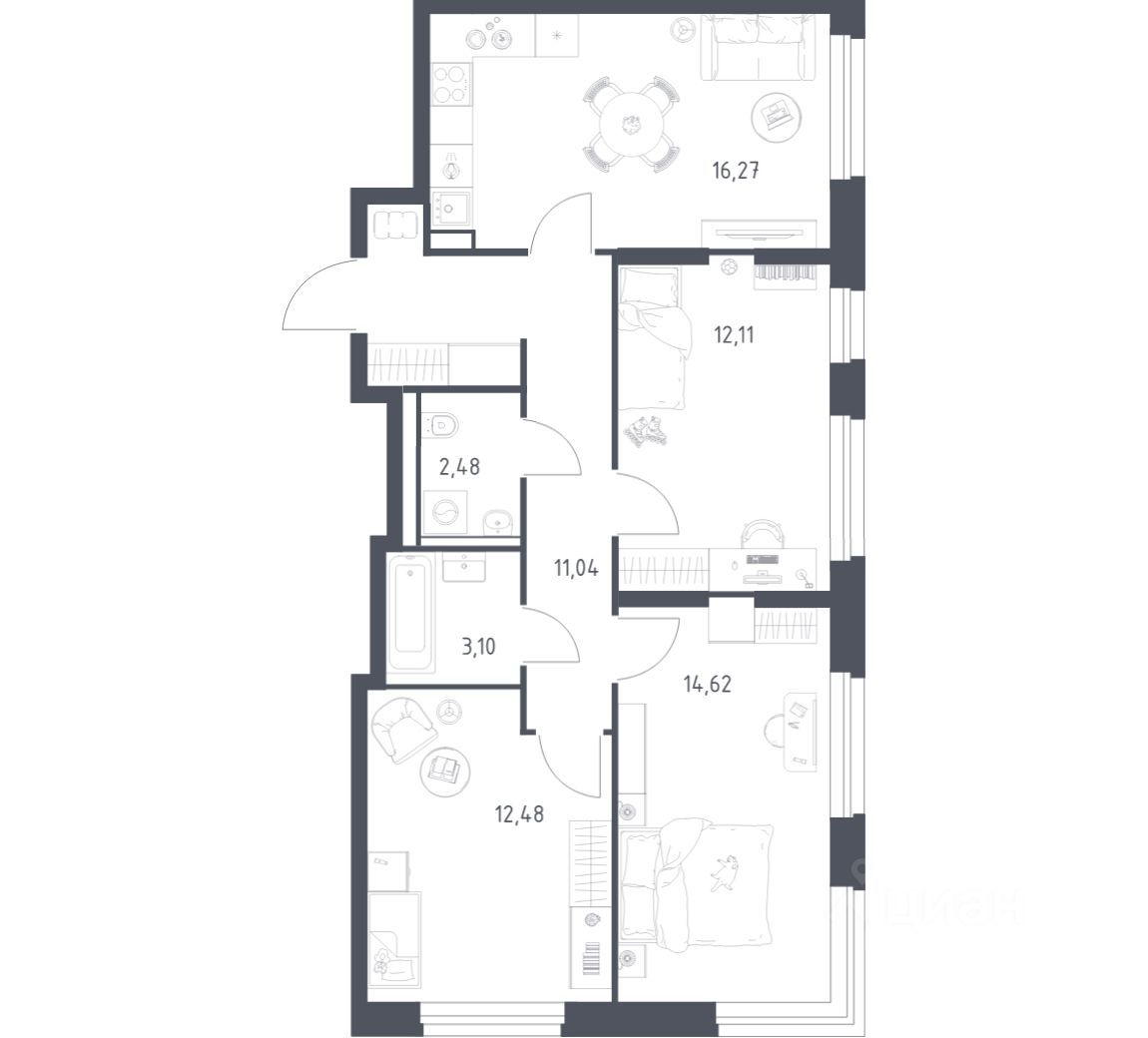 Строим кварталы для жизни с заботой о будущем. Предлагается 3-комнатная квартира комфорт-класса площадью 72,1 кв.м в корпусе 2 на 9-м этаже, в жилом комплексе "Квартал Строгино".