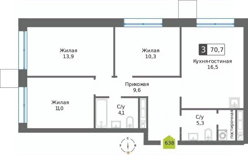 Общая площадь70,7 м²