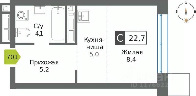 Общая площадь22,7 м²