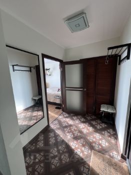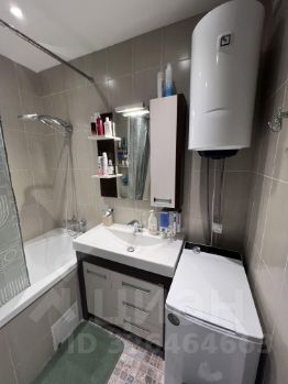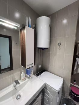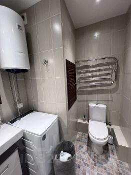 Совмещенный санузел выполнен в светлых тонах и оснащен современной сантехникой, имеется водонагреватель на 50 литров , вода от нагревателя подается как на ванну так и на кухню . В комнате установлен кондиционер .В прихожей предусмотрена просторная гардеробная.Дом оснащён пассажирским и грузовым лифтами, что обеспечивает удобство проживания.