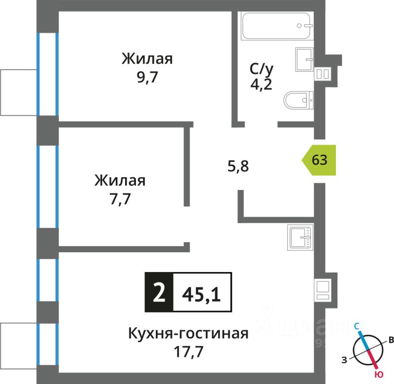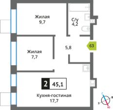 Продаётся 1-комнатная квартира в строящемся доме (поз. 9), срок сдачи: IV-кв. 2026, общей площадью 45.1 кв.м., на 5 этаже. Новый жилой комплекс "Отрада. Никольский квартал" от застройщика "СЗ Отрада Вилладж" расположен по адресу: Россия, Московская область, Красногорск, коттеджный посёлок Никольский Парк, улица Александра Блока