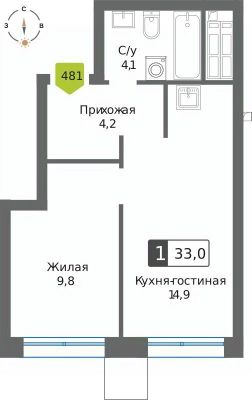 Площадь кухни14,9 м²