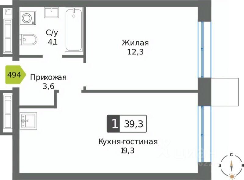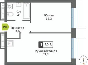 Общая площадь39,3 м²
