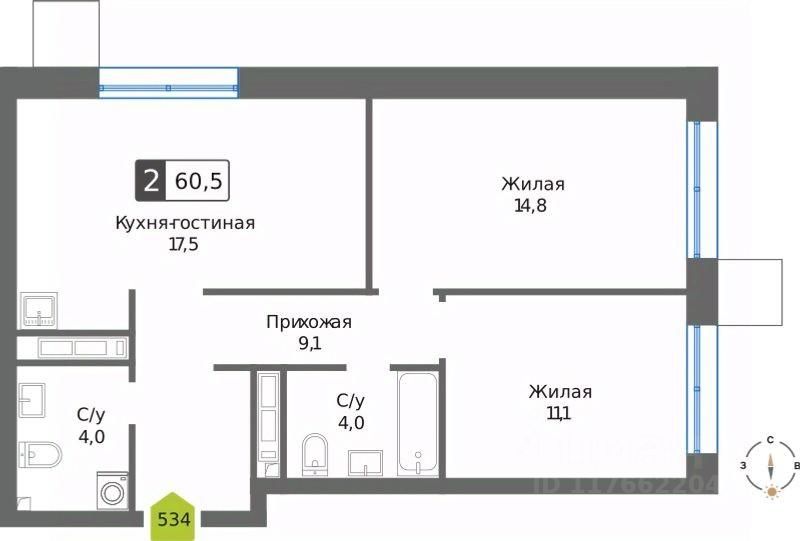 Общая площадь60,5 м²
