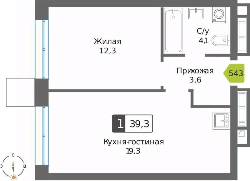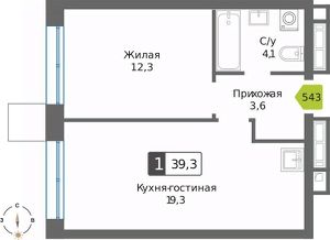 Общая площадь39,3 м²