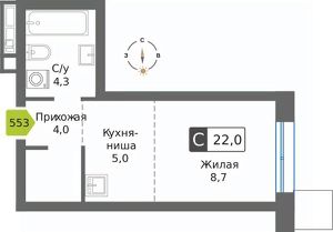 Квартира-студия с компактной кухней-нишей в жилом комплексе бизнес-класса "Сити квартал Отрада". Планировка квартиры выполнена по современным стандартам и отличается повышенным комфортом. Квартал состоит из трех 31-этажных башен, вырастающих из единого основания, на вершине которого разместился приватный двор с доступом только для резидентов. На 31 этаже каждой из башен располагаются уникальные пентхаусы. Благоустройство закрытого двора включает в себя прогулочные дорожки, уютные зоны отдыха, разнообразные детские и спортивные площадки, а также собственную инфраструктуру на первых этажах дома - магазины, кафе, рестораны и фитнес-клуб. Проектом предусмотрен многоуровневый подземный паркинг с кладовыми помещениями. Идеальное расположение комплекса в сердце города сочетает в себе все преимущества комфортной жизни с прямым доступом к инфраструктурным, транспортным и культурным объектам. Надежный застройщик ГК "Отрада" с высочайшим рейтингом 5 звезд от портала ЕРЗ. Все корпуса во всех ЖК сданы раньше срока!