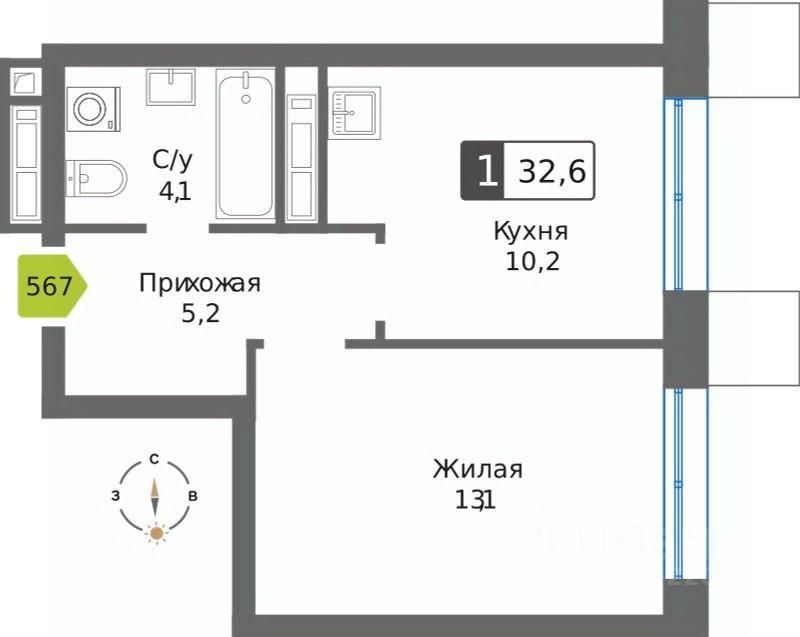 Общая площадь32,6 м²