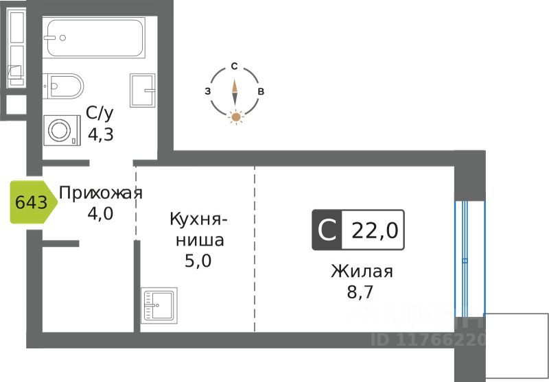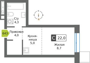 Общая площадь22,1 м²
