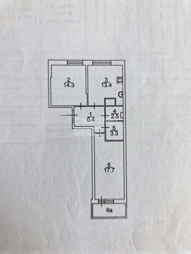 Общая площадь - 59.8 м.кв.
