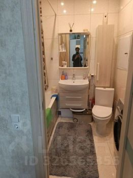 Ванная комната совмещенная, оформлена в светлых тонах, оснащена всем необходимым. Из мебели остаются шкаф-купе в прихожей и кухня с встроенной техникой, которые добавляют функциональности пространству.