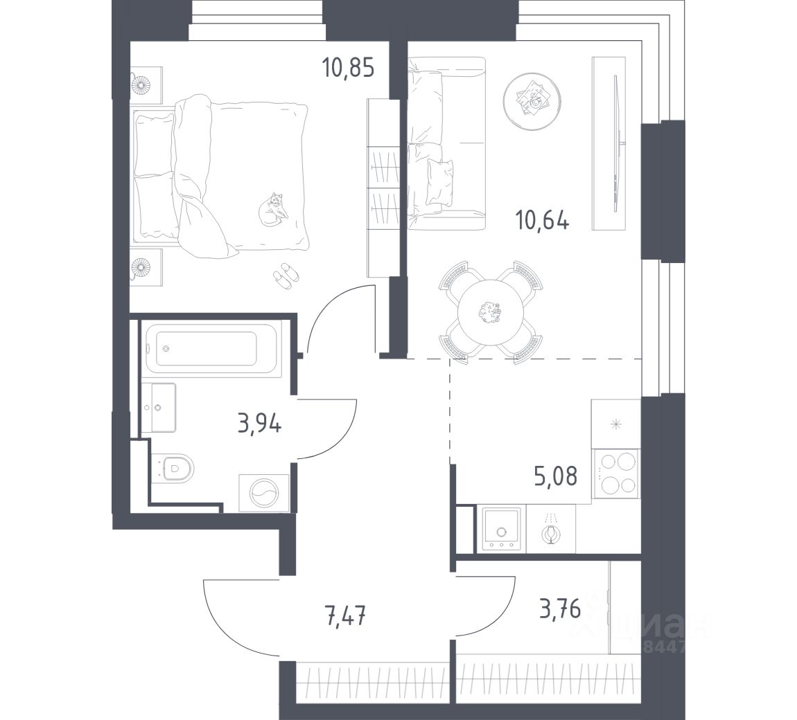 В варианте с готовой отделкой мы поклеили обои под покраску, постелили полы в комнатах и санузлах, выполнили отделку стен. Установили сантехнику и межкомнатные двери, провели электрику. Это лучшее соотношение цены, качества и затраченного времени. Осталось только выбрать место для обеденного стола и удобного дивана.