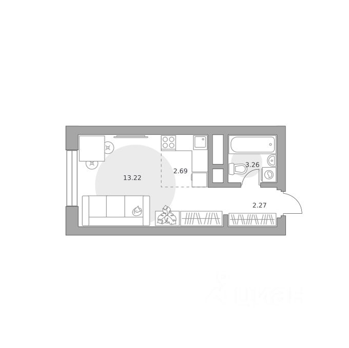 Продаётся студия 868, площадью 21,44 м², на 12 этаже в ЖК "Ильинойс" корпус 3. Стоимость — от 5809412 руб. Квартира без отделки, планировка односторонняя, окна на улицу.