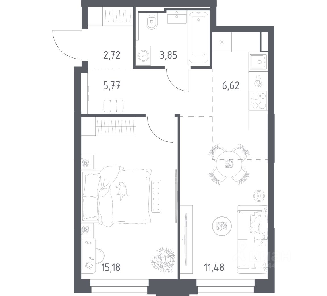Строим кварталы для жизни с заботой о будущем. Предлагается 1-комнатная квартира комфорт-класса площадью 45,62 кв.м в корпусе 3 на 19-м этаже, в жилом комплексе "Квартал Строгино".