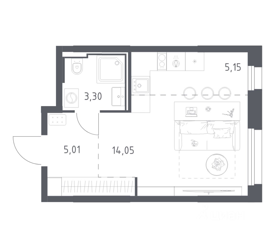 Строим кварталы для жизни с заботой о будущем. Предлагается студия комфорт-класса площадью 27,51 кв.м в корпусе 3 на 20-м этаже, в жилом комплексе "Квартал Строгино".