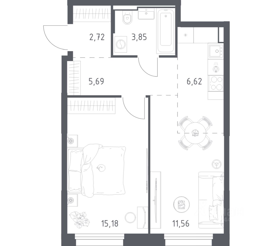 В варианте с готовой отделкой мы поклеили обои под покраску, постелили полы в комнатах и санузлах, выполнили отделку стен. Установили сантехнику и межкомнатные двери, провели электрику. Это лучшее соотношение цены, качества и затраченного времени. Осталось только выбрать место для обеденного стола и удобного дивана.