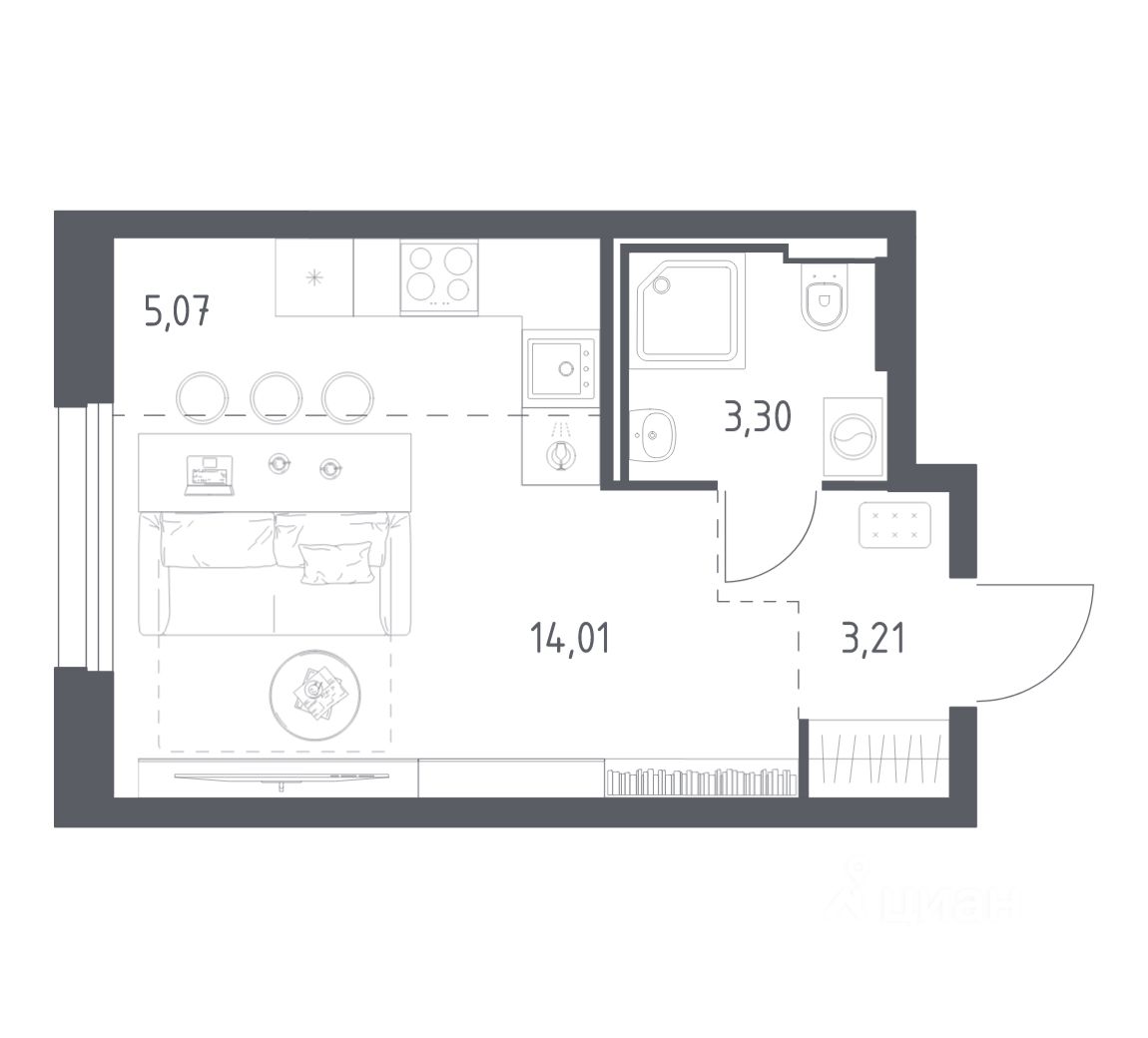 Строим кварталы для жизни с заботой о будущем. Предлагается студия комфорт-класса площадью 25,59 кв.м в корпусе 3 на 11-м этаже, в жилом комплексе "Квартал Строгино".