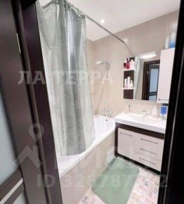 Совмещенный санузел выполнен в светлых тонах и оснащен современной сантехникой, имеется водонагреватель на 50 литров, вода от нагревателя подается как на ванну так и на кухню. В комнате установлен кондиционер. В прихожей есть просторная гардеробная.