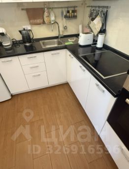 -Кухня-гостиная: качественный кухонный гарнитур фирмы Мария и встроенная бытовая техника Bosch остается в квартире.