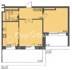 Площадь квартиры составляет 57 м2, плюс две террасы общей площадью 20,5 м2. Квартира без отделки.