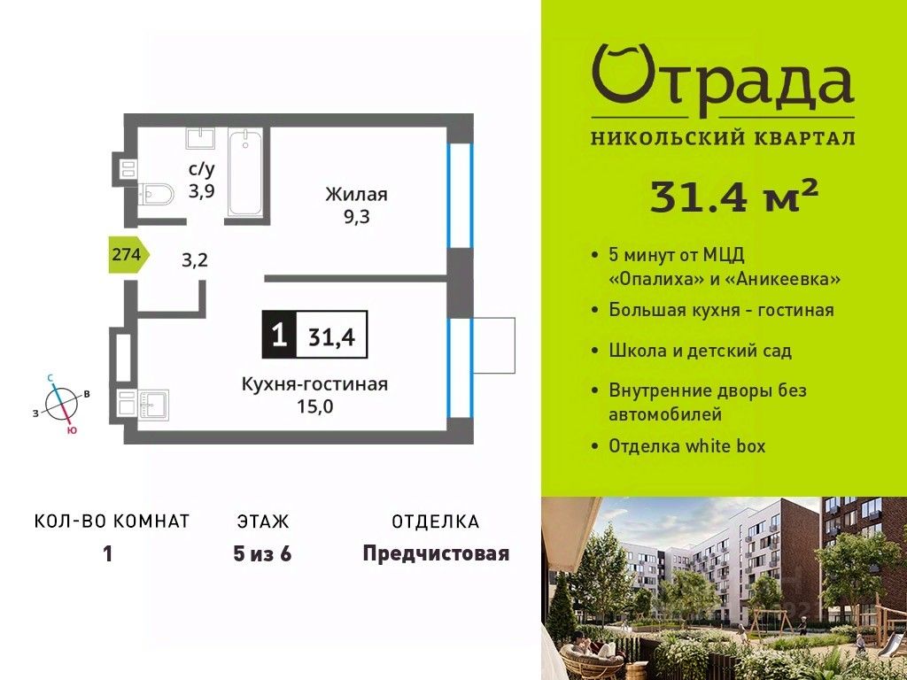 Общая площадь31,4 м²