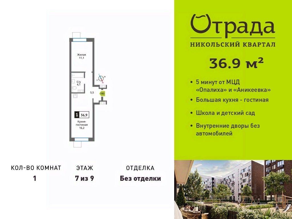 Однокомнатная квартира (евродвушка) с просторной кухней-гостиной Однокомнатная квартира (евродвушка) с просторной кухней-гостиной в жилом комплексе комфорт-класса "Никольский квартал Отрада". Планировка выполнена по современным стандартам и отличается повышенным комфортом. Квартал расположен в удачной локации, которая сочетает благоприятную экологическую обстановку с прекрасной транспортной доступностью. Проектом предусмотрены 14 корпусов высотой 6-9 этажей, а также муниципальная школа, один муниципальный и один частный детский сад, два наземных многоуровневых паркинга с кладовыми помещениями. Надежный застройщик ГК "Отрада" с высочайшим рейтингом 5 звезд от портала ЕРЗ. Все корпуса во всех ЖК сданы раньше срока!