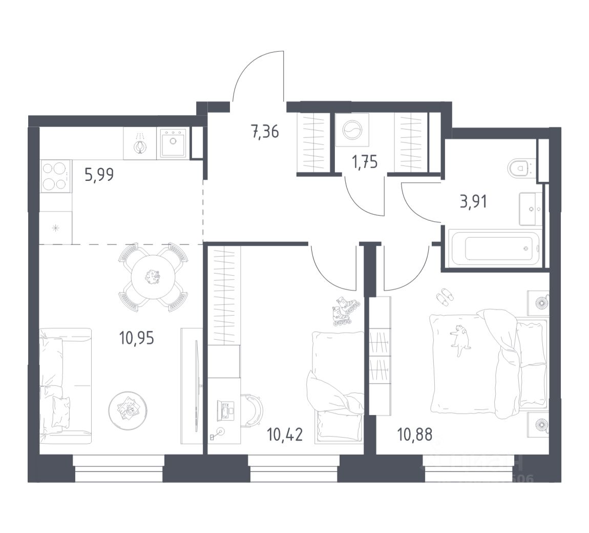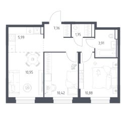 Строим кварталы для жизни с заботой о будущем. Предлагается 2-комнатная квартира комфорт-класса площадью 51,26 кв.м в корпусе 2 на 23-м этаже, в жилом комплексе "Квартал Строгино".