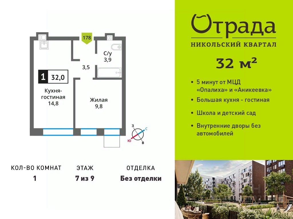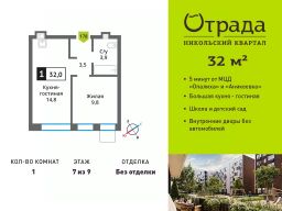 Однокомнатная квартира (евродвушка) с просторной кухней-гостиной Однокомнатная квартира (евродвушка) с просторной кухней-гостиной в жилом комплексе комфорт-класса "Никольский квартал Отрада". Планировка выполнена по современным стандартам и отличается повышенным комфортом. Квартал расположен в удачной локации, которая сочетает благоприятную экологическую обстановку с прекрасной транспортной доступностью. Проектом предусмотрены 14 корпусов высотой 6-9 этажей, а также муниципальная школа, один муниципальный и один частный детский сад, два наземных многоуровневых паркинга с кладовыми помещениями. Надежный застройщик ГК "Отрада" с высочайшим рейтингом 5 звезд от портала ЕРЗ. Все корпуса во всех ЖК сданы раньше срока!
