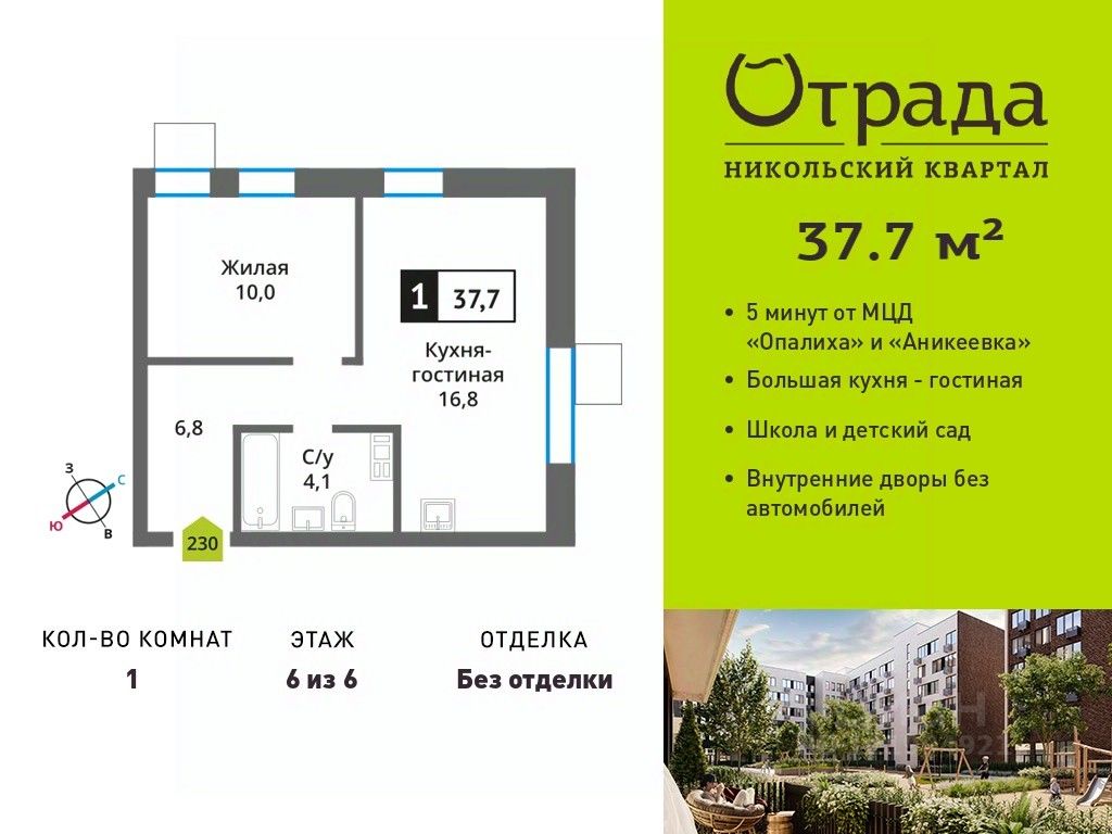 Однокомнатная квартира (евродвушка) с просторной кухней-гостиной Однокомнатная квартира (евродвушка) с просторной кухней-гостиной в жилом комплексе комфорт-класса "Никольский квартал Отрада". Планировка выполнена по современным стандартам и отличается повышенным комфортом. Квартал расположен в удачной локации, которая сочетает благоприятную экологическую обстановку с прекрасной транспортной доступностью. Проектом предусмотрены 14 корпусов высотой 6-9 этажей, а также муниципальная школа, один муниципальный и один частный детский сад, два наземных многоуровневых паркинга с кладовыми помещениями. Надежный застройщик ГК "Отрада" с высочайшим рейтингом 5 звезд от портала ЕРЗ. Все корпуса во всех ЖК сданы раньше срока!