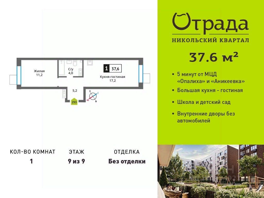 Однокомнатная квартира (евродвушка) с просторной кухней-гостиной в жилом комплексе комфорт-класса "Никольский квартал Отрада". Планировка выполнена по современным стандартам и отличается повышенным комфортом. Квартал расположен в удачной локации, которая сочетает благоприятную экологическую обстановку с прекрасной транспортной доступностью. Проектом предусмотрены 14 корпусов высотой 6-9 этажей, а также муниципальная школа, один муниципальный и один частный детский сад, два наземных многоуровневых паркинга с кладовыми помещениями. Надежный застройщик ГК "Отрада" с высочайшим рейтингом 5 звезд от портала ЕРЗ. Все корпуса во всех ЖК сданы раньше срока!