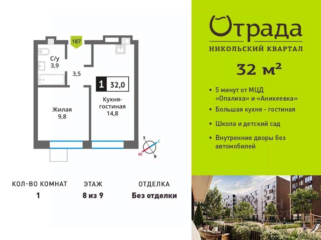 Однокомнатная квартира (евродвушка) с просторной кухней-гостиной Однокомнатная квартира (евродвушка) с просторной кухней-гостиной в жилом комплексе комфорт-класса "Никольский квартал Отрада". Планировка выполнена по современным стандартам и отличается повышенным комфортом. Квартал расположен в удачной локации, которая сочетает благоприятную экологическую обстановку с прекрасной транспортной доступностью. Проектом предусмотрены 14 корпусов высотой 6-9 этажей, а также муниципальная школа, один муниципальный и один частный детский сад, два наземных многоуровневых паркинга с кладовыми помещениями. Надежный застройщик ГК "Отрада" с высочайшим рейтингом 5 звезд от портала ЕРЗ. Все корпуса во всех ЖК сданы раньше срока!