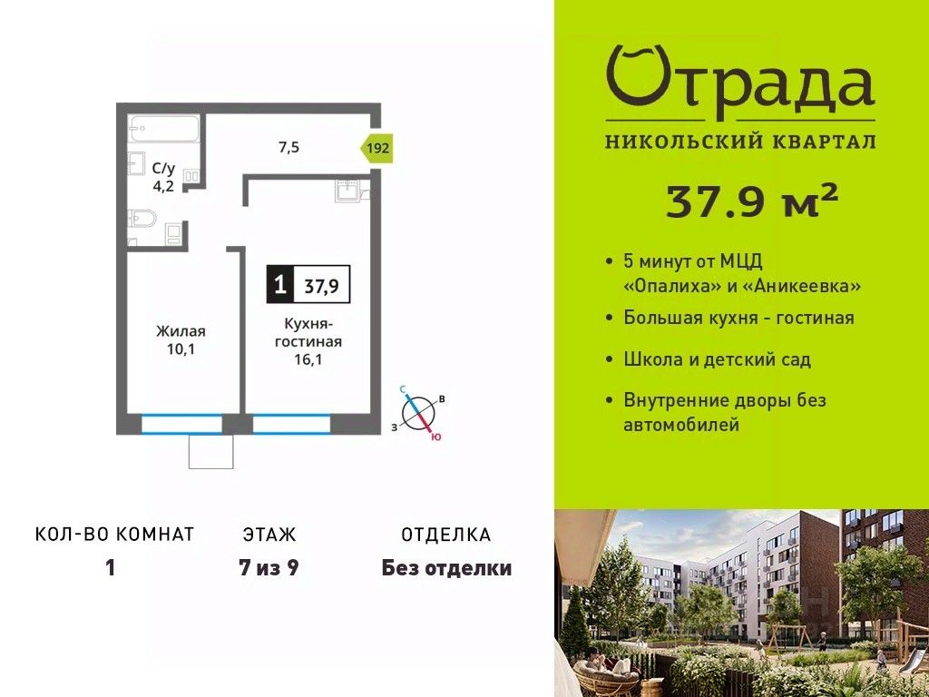 Однокомнатная квартира (евродвушка) с просторной кухней-гостиной Однокомнатная квартира (евродвушка) с просторной кухней-гостиной в жилом комплексе комфорт-класса "Никольский квартал Отрада". Планировка выполнена по современным стандартам и отличается повышенным комфортом. Квартал расположен в удачной локации, которая сочетает благоприятную экологическую обстановку с прекрасной транспортной доступностью. Проектом предусмотрены 14 корпусов высотой 6-9 этажей, а также муниципальная школа, один муниципальный и один частный детский сад, два наземных многоуровневых паркинга с кладовыми помещениями. Надежный застройщик ГК "Отрада" с высочайшим рейтингом 5 звезд от портала ЕРЗ. Все корпуса во всех ЖК сданы раньше срока!