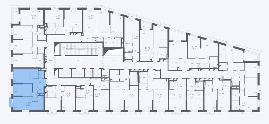Идеальная планировка для воплощения самых функциональных решений: возможна реализация мастер-спальни и комнаты для каждого члена семьи, а также инвестиционного варианта - деления квартиры на 3 студии.